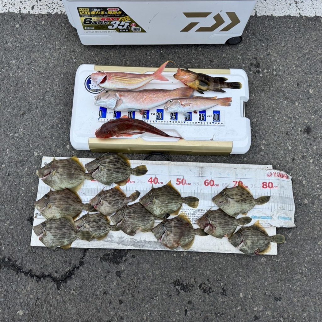 カワハギ・オオモンハタ 江梨沖水深30m アサリ・オキアミ